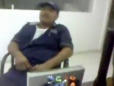 China.night shift. Station Guard.stroking off