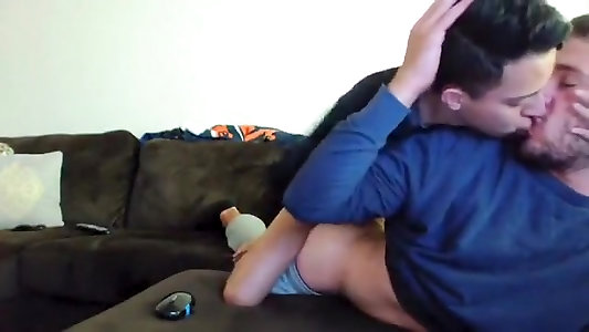 Super-steamy & hairy muscle daddies without a condom on the couch