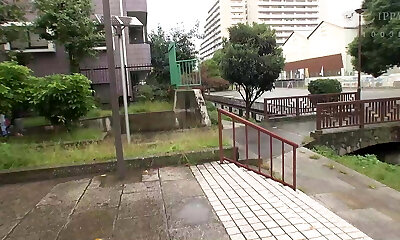 Asian public sex orgy with torrid babes in public garden