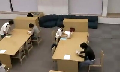 Japanese college girl get pulverized and facial cumshot on the library toilet